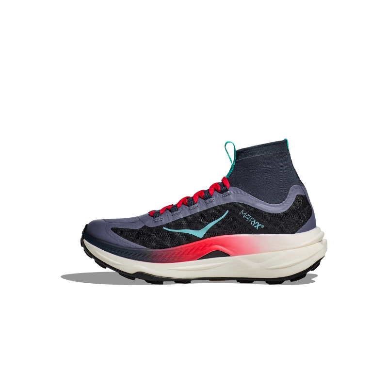 Nove Tecton X 3 su spremne za najzahtjevnije terene. Uz postojeću karbonsku ploču dodana su krilca za dodatnu stabilnost i dva sloja PEBA pjene - najlakše i najotpornije smjese. Redizajnirani oblik ripna i njihovo pozicioniranje na Vibram® Megagrip potplatu pružaju bolju trakciju. Pleteni ovratnik tenisice proteže se od jezika i djelije poput gamaše kako ne bi ulazili kamenčići, zemljani ostaci i slično, a lagani Matryx® tekstilni gornji dio čini ovu tenisicu izdržljivijom nego ikad.